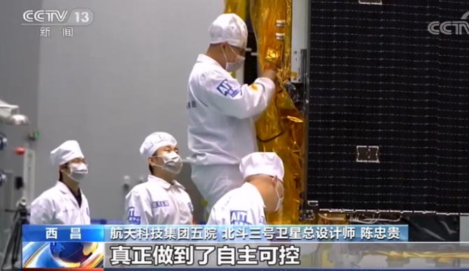 航天科技集團(tuán)五院 北斗三號衛(wèi)星總設(shè)計(jì)師 陳忠貴:我們北斗三號衛(wèi)星,衛(wèi)星部組件都是百分之百的是國產(chǎn),衛(wèi)星關(guān)鍵的和核心的元器件都是國產(chǎn)的,真正做到了自主可控。衛(wèi)星具有自主完好性監(jiān)測功能,這個也是在我國導(dǎo)航衛(wèi)星上率先使用,具有國際領(lǐng)先水平。