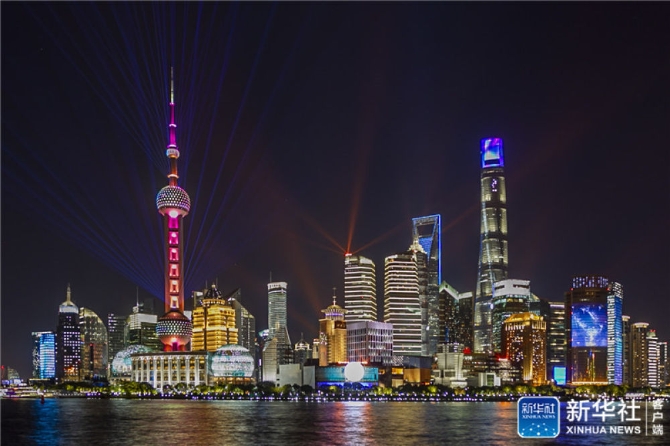 ↑上海陸家嘴夜景(11月5日攝)。新華社發(fā)(王翔/攝)