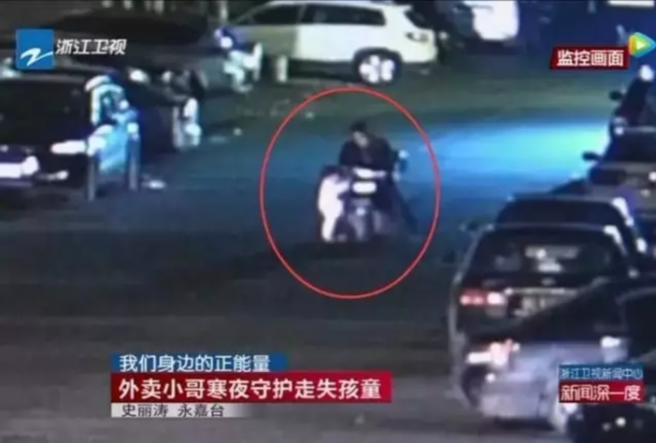 晚上11點(diǎn)40分左右,夜已深。溫州永嘉縣外賣小哥周瑜載著幾份還沒送完的快餐一路往前,視線里突然闖入一個(gè)小男孩,一邊哭泣一邊喊爸爸媽媽。 小哥問不出孩子的家在哪、爸爸媽媽是誰(shuí)。寒冷的夜晚,孩子光著腳丫子穿得單薄。小哥把他抱上電瓶車,給他披上自己夾棉的工作外套?! 〉群⒆忧榫w平穩(wěn),撥通了報(bào)警電話。民警說,他到的時(shí)候,小男孩一直抱著外賣小哥不肯松開。