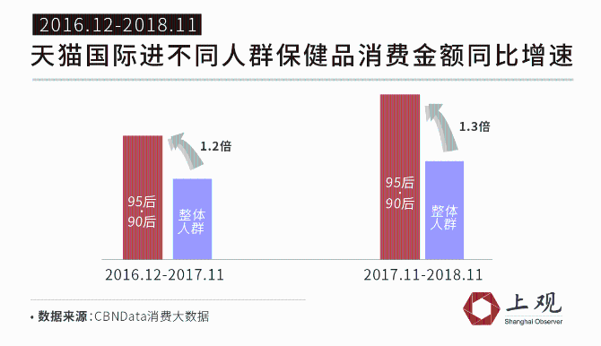 在狂飆的進口產(chǎn)品消費中,年輕消費群體的力量不可忽視。2017年,天貓國際的90后、95后消費者人數(shù)占45.2%,2018年這一占比更超過50%。