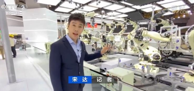 記者 宋達(dá):我們看到的是日本品牌NACHI的18臺(tái)汽車工業(yè)機(jī)器人。在后半部分的9臺(tái)做的是點(diǎn)焊工作,前半部分的6臺(tái)做的是組裝工作。我們看到每一個(gè)機(jī)械臂都運(yùn)轉(zhuǎn)得非常靈活。今天在這兒我們只是看到個(gè)別工位的展示,實(shí)際上在日本的汽車生產(chǎn)線上,所有的工位是同時(shí)開工的,裝配完一輛汽車僅需要52秒時(shí)間。