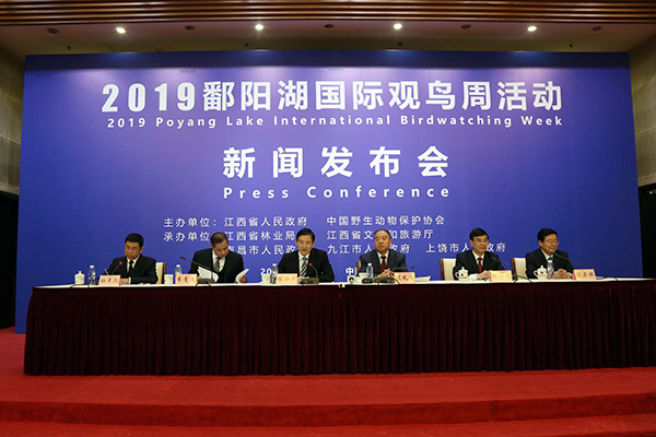 “2019鄱陽湖國際觀鳥周活動”新聞發(fā)布會現(xiàn)場。宋崢/攝