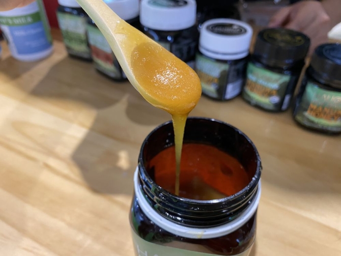 11月6日,這是第二屆進(jìn)博會(huì)參展商帶來的麥盧卡蜂蜜。新華社 記者陳倩攝