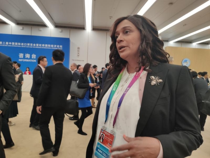 正當記者在感謝女總裁接受采訪時,一旁一位黑皮膚的女士拉住了記者,“你可以采訪我嗎?”記者當然樂意,一陣熱聊,她名叫貝拉,是安哥拉Luandina食品公司的CEO。“我們主要向中國出口啤酒,我們生產(chǎn)啤酒的水是從地底深處打上來的,非常純凈。今年是我們首次參展進博會”。深聊發(fā)現(xiàn),這家安哥拉企業(yè)的驚人主動創(chuàng)造了驚人速度——今年1月,通過網(wǎng)上“搜索”,貝拉找到了中國企業(yè)蘇寧,并向蘇寧寄送了其啤酒樣品。后經(jīng)蘇寧反復考核,貝拉有韌性有耐心,最終產(chǎn)品過關(guān),2個月后即今年3月就已在蘇寧順利上線。由此,Luandina公司首次實現(xiàn)向中國出口,迄今不足8個月,已出口20個集裝箱。