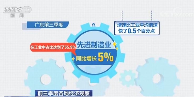 廣東前三季度先進制造業(yè)同比增長5%,增速比工業(yè)平均增速快了0.5個百分點,在工業(yè)中占比達到了55.9%;服務(wù)業(yè)增長對GDP增長的貢獻率為66.2%。江蘇不光是服務(wù)業(yè)增長勢頭不減,前三季度,全省受理高新技術(shù)企業(yè)申報超過17000家,同比增長近6成,創(chuàng)下歷史新高,高技術(shù)制造業(yè)同比增長7.6%,快于工業(yè)1.8個百分點。