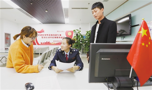 ?11月1日,國家稅務總局河北保定市競秀區(qū)稅務局服務人員在為民營企業(yè)辦理業(yè)務并講解稅收優(yōu)惠政策。 張麗茹攝(中經(jīng)視覺)
