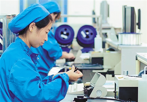 ?近日,民營智能制造高科技企業(yè)江蘇南通中天科技集團的研發(fā)人員正在專心致志進行光纖檢測。葉振華攝