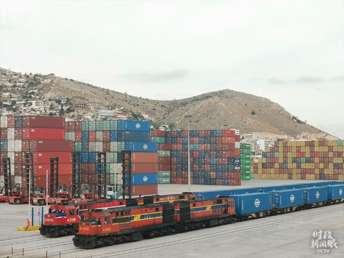△滿載貨物的“中歐陸海快線”班列整裝待發(fā)。(央視記者周志國拍攝)