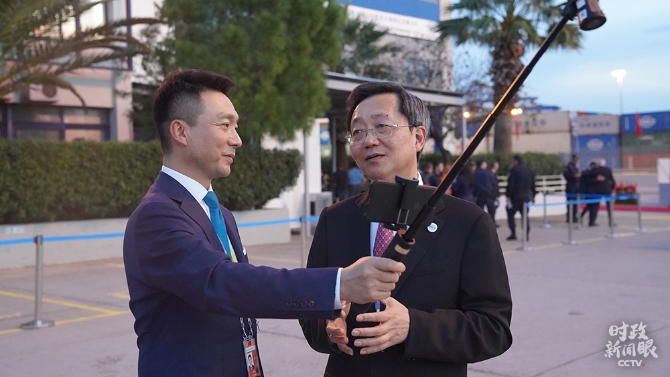 △《康輝@大國外交最前線》正在現(xiàn)場采訪剛剛給習(xí)主席做完匯報的中遠(yuǎn)海運(yùn)董事長許立榮。