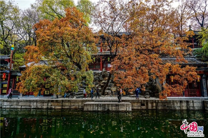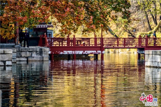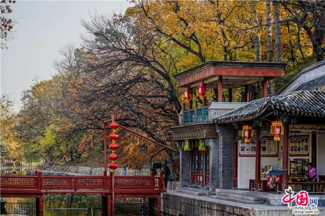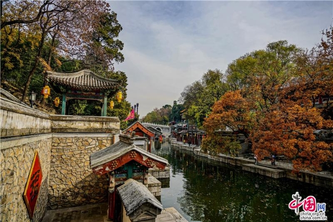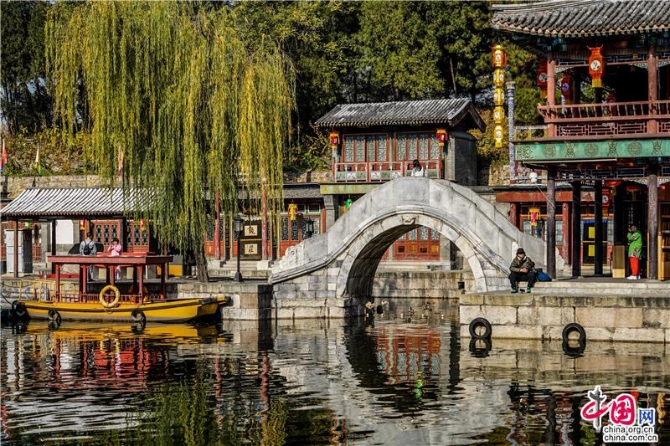 立冬后的京城,依然是深秋的景色一片,蘇州街上幾株楓樹點(diǎn)燃了這條寧靜的水街,游客三三兩兩穿梭在狹窄的岸邊,河水輕漾,樓閣倒映,落葉沉浮,流水并不能倒流,時(shí)光更不能,當(dāng)走過每一間店鋪,看身著仿古服飾的店員,總有種穿越時(shí)空的錯(cuò)覺,畫舫在水中晃晃悠悠,從街的這頭到那頭,一瞬間,似乎來到乾隆時(shí)代的京城江南岸。