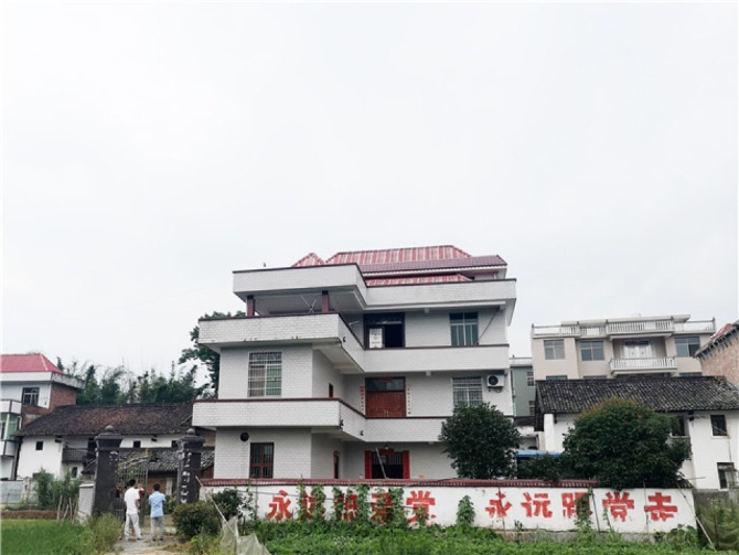 在她家三層半小樓外墻上,掛著一塊“黨員家庭戶”的小鐵牌;院子外墻上,“永遠(yuǎn)熱愛黨、永遠(yuǎn)跟黨走”幾個(gè)紅色大字格外醒目。