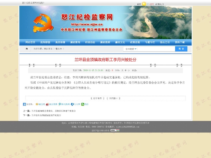 依據(jù)《中國(guó)共產(chǎn)黨紀(jì)律處分條例》《公職人員政務(wù)處分暫行規(guī)定》的相關(guān)規(guī)定,經(jīng)蘭坪縣紀(jì)委常委會(huì)會(huì)議研究,決定給予李月興開(kāi)除黨籍處分,由縣監(jiān)委給予其降低崗位等級(jí)處分。(本文由昆明信息港寫稿機(jī)器人小明根據(jù)怒江紀(jì)檢監(jiān)察委網(wǎng)站數(shù)據(jù)自動(dòng)合成發(fā)布)