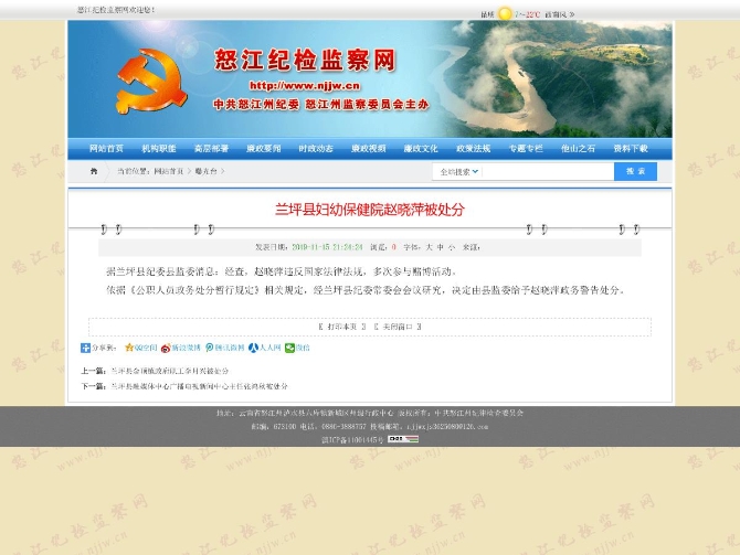依據(jù)《公職人員政務(wù)處分暫行規(guī)定》相關(guān)規(guī)定,經(jīng)蘭坪縣紀(jì)委常委會(huì)會(huì)議研究,決定由縣監(jiān)委給予趙曉萍政務(wù)警告處分。(本文由昆明信息港寫稿機(jī)器人小明根據(jù)怒江紀(jì)檢監(jiān)察委網(wǎng)站數(shù)據(jù)自動(dòng)合成發(fā)布)