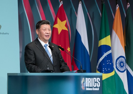在金磚國(guó)家領(lǐng)導(dǎo)人閉門(mén)會(huì)議上,習(xí)主席指出,金磚國(guó)家的發(fā)展壯大,帶動(dòng)了國(guó)際格局調(diào)整的速度、廣度、深度,正在從根本上改變世界政治經(jīng)濟(jì)版圖。