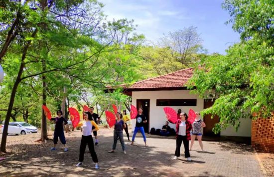 ▲巴西學(xué)生在巴西利亞大學(xué)孔子學(xué)院體驗(yàn)中國(guó)扇子舞。(巴西利亞大學(xué)孔子學(xué)院供圖)