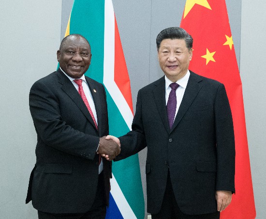 ▲當(dāng)?shù)貢r(shí)間11月14日,國(guó)家主席習(xí)近平在巴西利亞會(huì)見(jiàn)南非總統(tǒng)拉馬福薩。新華社記者王曄攝