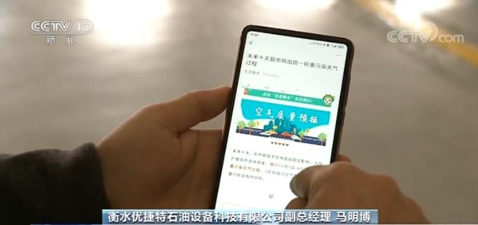 衡水優(yōu)捷特石油設(shè)備科技有限公司副總經(jīng)理馬明博說,10月28號,我們收到一個預(yù)計11月1號到6號可能出現(xiàn)重污染天氣過程。10月28號到11月1號,我們把所有的涉氣工序都打開,提前生產(chǎn)出來產(chǎn)品。到11月1號的時候,我們會停掉50%的涉氣設(shè)備,人員已經(jīng)提前安排到非涉氣工序。