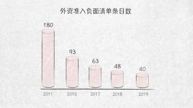 外資準(zhǔn)入負(fù)面清單從180條減少到40條