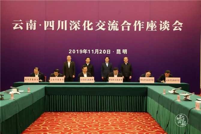 11月19日,四川省黨政代表團(tuán)來滇考察。20日上午,兩省在昆明市舉行云南·四川深化交流合作座談會(huì),并簽署有關(guān)合作協(xié)議。
