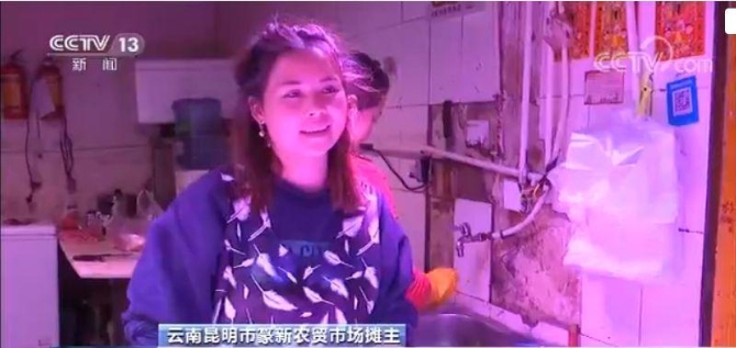 云南昆明市篆新農(nóng)貿(mào)市場(chǎng)攤主:這兩天豬肉價(jià)是降了一點(diǎn)了,前腿現(xiàn)在65元(一公斤)。