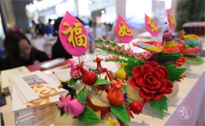 (甘肅展區(qū)帶來了國家級(jí)非遺——慶陽合水面塑的精美作品。)