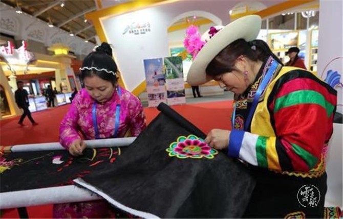 (青海展區(qū)的土族盤繡。)