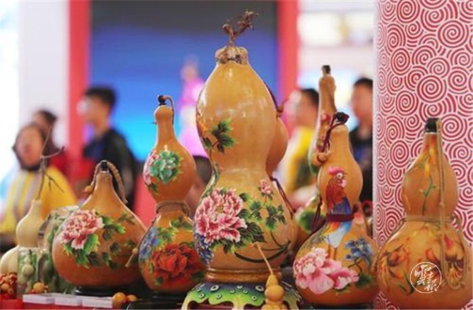 (遼寧展區(qū)的景泰藍(lán)工藝葫蘆。)