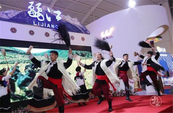 (云南麗江展區(qū)的熱巴舞展演。)