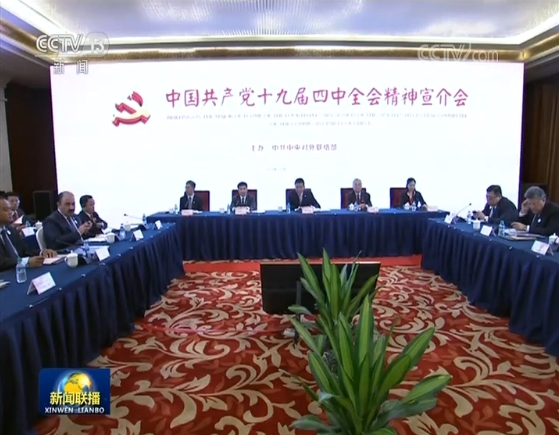 20日,中共中央對外聯(lián)絡(luò)部還在南昌舉辦了“中國共產(chǎn)黨十九屆四中全會精神”宣介會。介紹了黨的十九屆四中全會召開的時代背景、總體目標和重點任務(wù)等內(nèi)容。