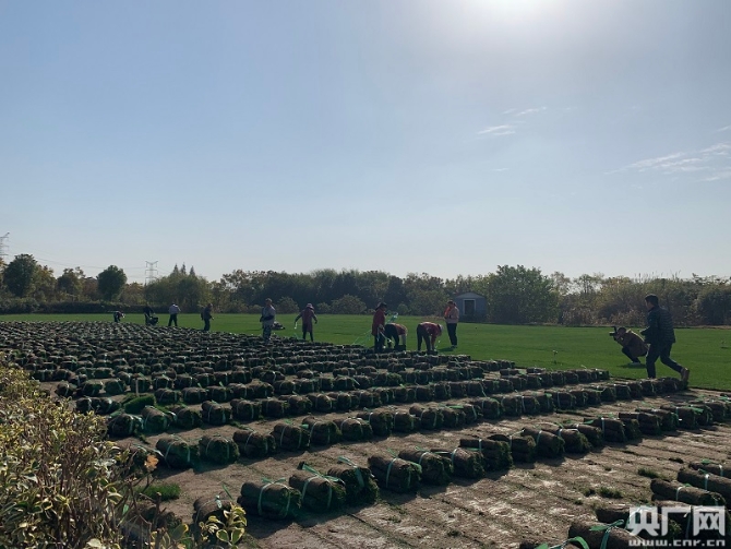 梅林村內(nèi)村民種植的草皮(央廣網(wǎng)記者 孫冰潔 攝)