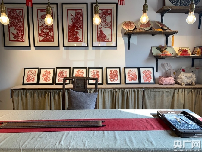 梅林匠心鋪內(nèi)陳設(shè)的村民作品(央廣網(wǎng)記者 孫冰潔 攝)