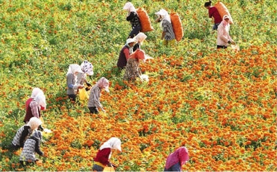 隔壁是一個500平方米的車間,20多位本村婦女正在做工。這是閩寧合作的人造花扶貧車間,不用當(dāng)?shù)夭傩挠唵巍N路,做不完的活計帶回家也能接著干。每個月人均收入1000多元。像這樣的車間,僅在隆德縣就有11個。