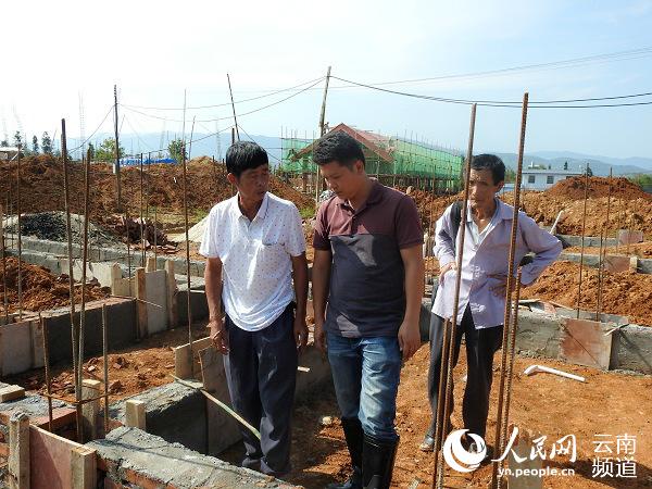 楚建榮(中)查看民居建設(shè)情況。受訪者供圖