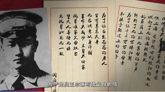 中共湖南省委黨史研究院院長胡振榮:其實(shí)相差只有幾天,就在這個(gè)時(shí)候,王爾琢感覺到非常愧疚妻兒,就提筆給父母寫了一封信,也就是大家所熟悉的“托孤書”。