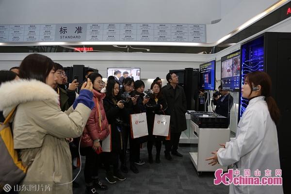 在浪潮展廳,工作人員向采訪團詳細介紹了浪潮高端容錯計算機天梭K1、天梭M13,AI服務(wù)器等硬科技產(chǎn)品,以及浪潮云、愛城市網(wǎng)、一貸通、質(zhì)量鏈和工業(yè)互聯(lián)網(wǎng)等數(shù)字經(jīng)濟創(chuàng)新應(yīng)用。