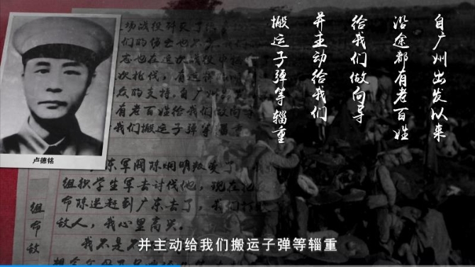 “這場(chǎng)戰(zhàn)役殲滅了很多敵人,但是我們的傷亡也不少。我們的營(yíng)長(zhǎng)曹淵同志也在這次戰(zhàn)役中犧牲了。我們這次北伐,有這樣的順利進(jìn)軍,全靠群眾的支持。自廣州出發(fā)以來(lái),沿途都有老百姓給我們做向?qū)?,并主?dòng)給我們搬運(yùn)子彈等輜重。”