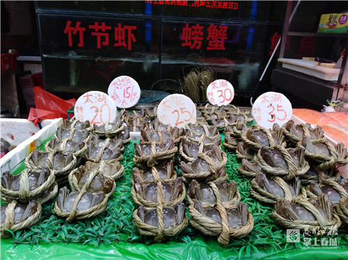 除蝦降價外,記者注意到,海鮮市場大閘蟹價格也出現(xiàn)了下調(diào),現(xiàn)大閘蟹為90元/公斤至120元/公斤,2.5公兩的大閘蟹為25元/只至35元/只,1.5公兩的大閘蟹為15元/只至20元/只。