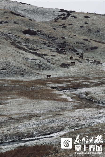 昆明信息港訊(昆明日?qǐng)?bào) 記者王姍)12月4日,會(huì)澤大海草山風(fēng)景區(qū)降下2019年冬季第一場(chǎng)雪。上午10時(shí)左右,紛紛揚(yáng)揚(yáng)的雪花飄落,剎那間,為整個(gè)景區(qū)披上一層淡淡的白紗,仿佛一幅夢(mèng)中的寫(xiě)意山水畫(huà)。