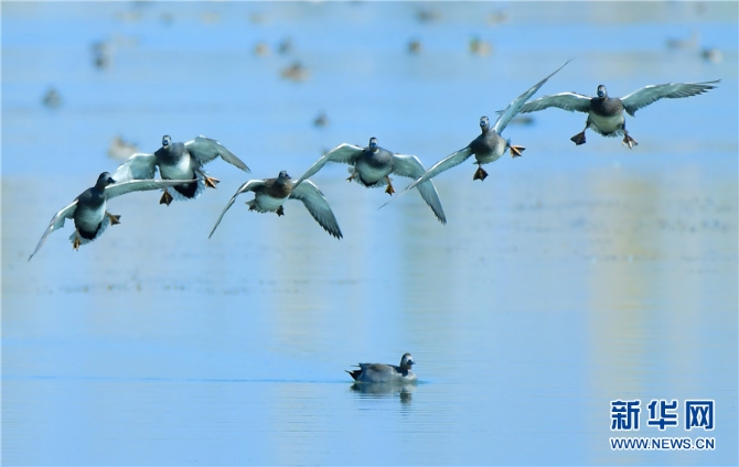 到保山青華海國家濕地公園過冬的候鳥。新華網(wǎng)發(fā)(蔡慶彪 攝)
