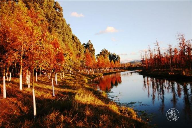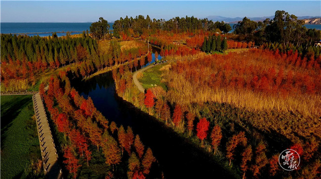 明代楊慎曾在《滇海曲》中夸贊昆明:蘋香波暖泛云津,漁枻樵歌曲水濱。天氣常如二三月,花枝不斷四時春。每年11月末12月初,滇池邊的中山杉就開始泛紅,遠遠望去,大片的水上森林十分美麗。若天氣晴好,在藍天、白云、綠樹、青草、枯黃的蘆葦和各色鮮花的映襯下,色彩非常豐富而分明,讓人賞心悅目。徜徉期間,呼吸著清新的空氣,讓人流連忘返。間或可以看到從西伯利亞遠道而來的海鷗從上空飛過,濕地草叢中還能聽到各種水鳥鳴叫聲,為冬日增添了幾分生動。