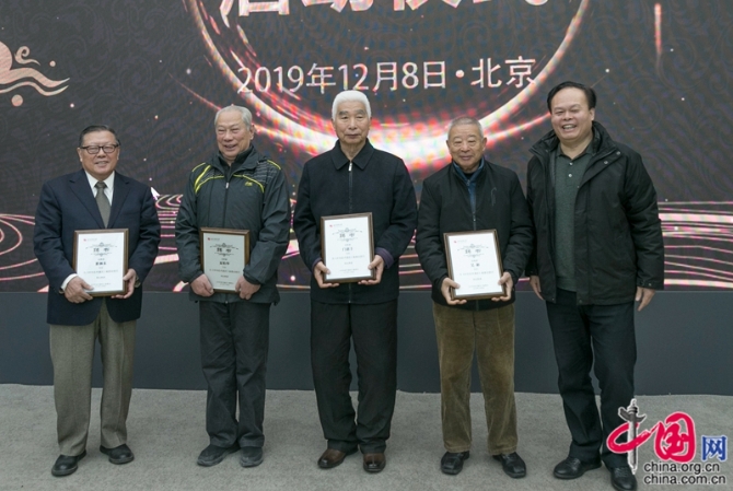 陳恩堂書記為《中華武術通史》顧問瞿林東、夏柏華、門惠豐、吳彬頒發(fā)聘書。