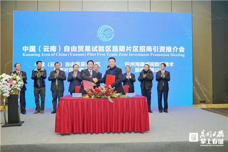 昆明信息港訊(昆明日?qǐng)?bào) 全媒體記者吳潔 通訊員馮靖凱)12月10日,中國(guó)(云南)自由貿(mào)易試驗(yàn)區(qū)昆明片區(qū)招商推介會(huì)在杭州舉行。在浙江省旅游和文化廳、浙江省商會(huì)的支持下,浙江中南控股集團(tuán)、富通集團(tuán)、康恩貝集團(tuán)等50余企業(yè)高管,與昆明片區(qū)管委會(huì)黨工委書記、管委會(huì)主任帶隊(duì)的招商團(tuán)隊(duì)進(jìn)行了面對(duì)面的洽談。推介會(huì)上,富通集團(tuán)有限公司、杭州海康威視數(shù)字技術(shù)股份有限公司、嘉浩控股有限公司分別與昆明片區(qū)管委會(huì)簽訂了合作框架協(xié)議。