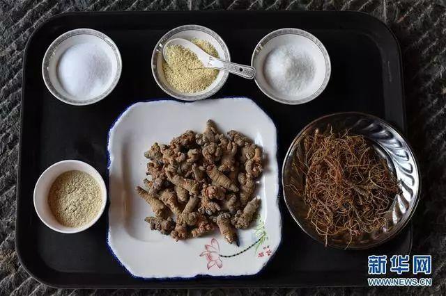 石林櫻花峪藥膳公園烹制三七藥膳的三七和三七根