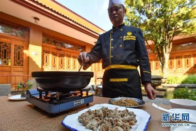 石林櫻花峪藥膳公園大廚楊先勇在烹制三七烏雞湯