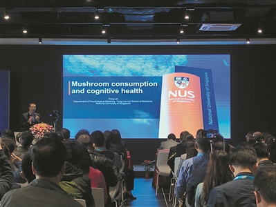 封磊正在做食用蘑菇與老年癡呆之關(guān)系的學術(shù)報告。