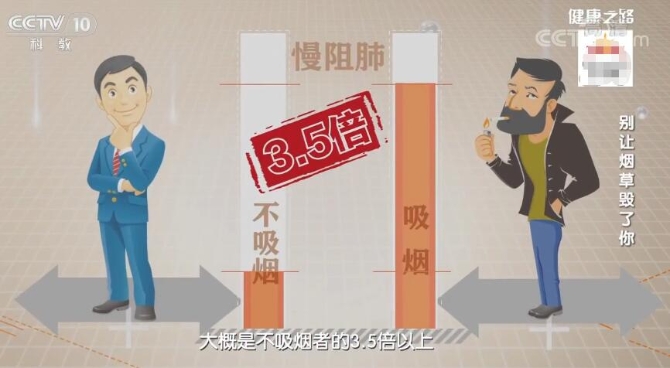 北京醫(yī)院呼吸科副主任醫(yī)師周為表示,吸煙者得慢阻肺的風(fēng)險約為不吸煙者的3.5倍以上,而且,約6成以上的確診慢阻肺后仍不戒煙的患者,最終走向了死亡。跟著專家測試一下是否存在慢阻肺風(fēng)險。
