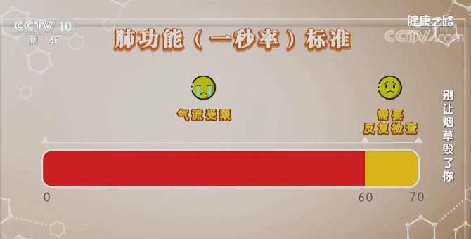 一秒率70%是氣流受限的界值。測試結(jié)果低于70%,即為氣流受限,同時,如果測試者吸煙,就可以基本確認(rèn)患有慢阻肺。
