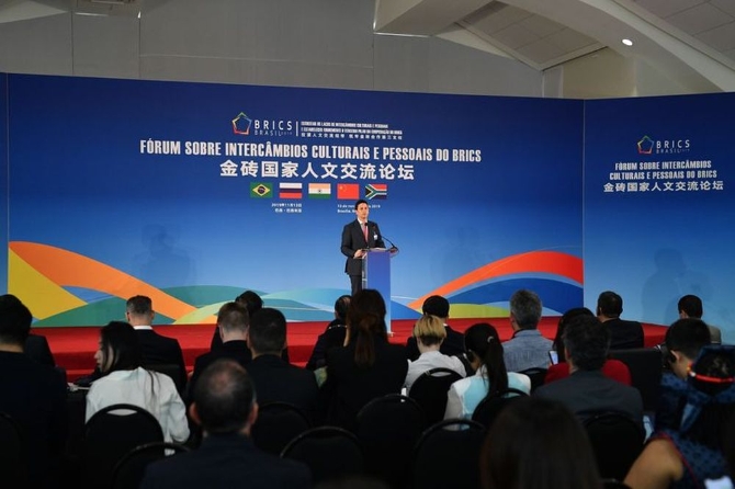 11月13日,金磚國(guó)家人文交流論壇暨首部金磚國(guó)家聯(lián)拍紀(jì)錄片《孩童和榮耀》全球首映式在巴西首都巴西利亞舉行。(新華社記者辛悅衛(wèi)攝)