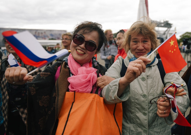 9月14日,在俄羅斯首都莫斯科,人們手拿兩國(guó)國(guó)旗參加“中國(guó)文化節(jié)”慶祝活動(dòng)。(新華社發(fā))