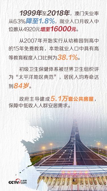 回歸祖國(guó)大家庭后,澳門的民生福利水平“芝麻開花節(jié)節(jié)高”。截至2018年底,澳門社?;鹳Y產(chǎn)總值增加至近800億元(澳門元,下同)。居民養(yǎng)老金2019年調(diào)升至每月3630元。再加上救濟(jì)和福利體系日益健全,澳門人民已經(jīng)越來越多地享受到了國(guó)家發(fā)展帶來的紅利。